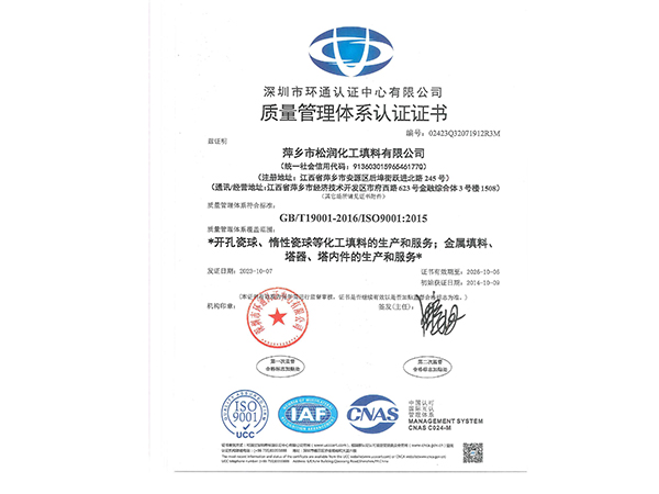 萍鄉(xiāng)市松潤化工填料有限公司位于江西省萍鄉(xiāng)市國家經(jīng)濟開發(fā)區(qū)西區(qū),是專業(yè)生產(chǎn)、經(jīng)營陶瓷、聚丙烯、金屬填料、塔內(nèi)件、水處理濾板、濾管、濾料、瓷球、分子篩、催化劑、活性炭、蜂窩陶瓷、瓷質(zhì)耐磨托輥等系列產(chǎn)品的民營企業(yè)。所有產(chǎn)品由國家非金屬材料和設備質(zhì)量監(jiān)測中心監(jiān)測檢驗認證。公司現(xiàn)有員工280人,其中有高、中級職稱技術人員36人。工藝先進,技術力量雄厚,產(chǎn)品質(zhì)量可靠,配...